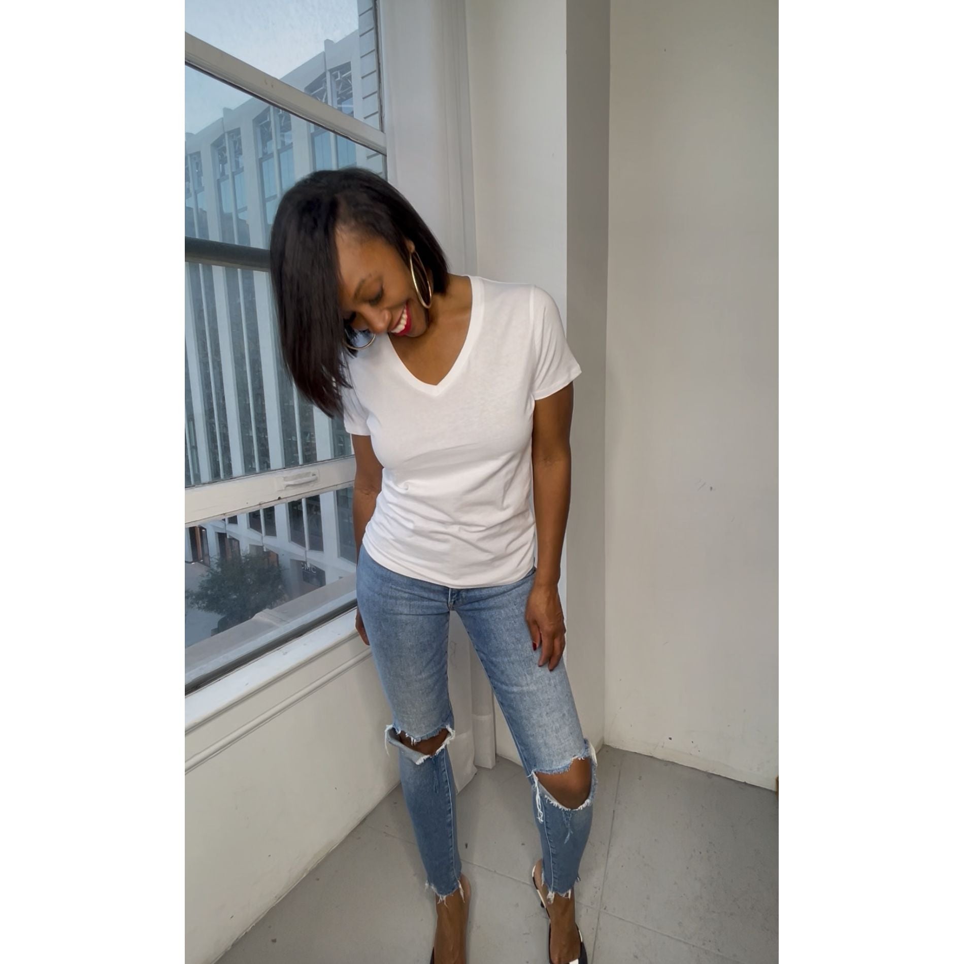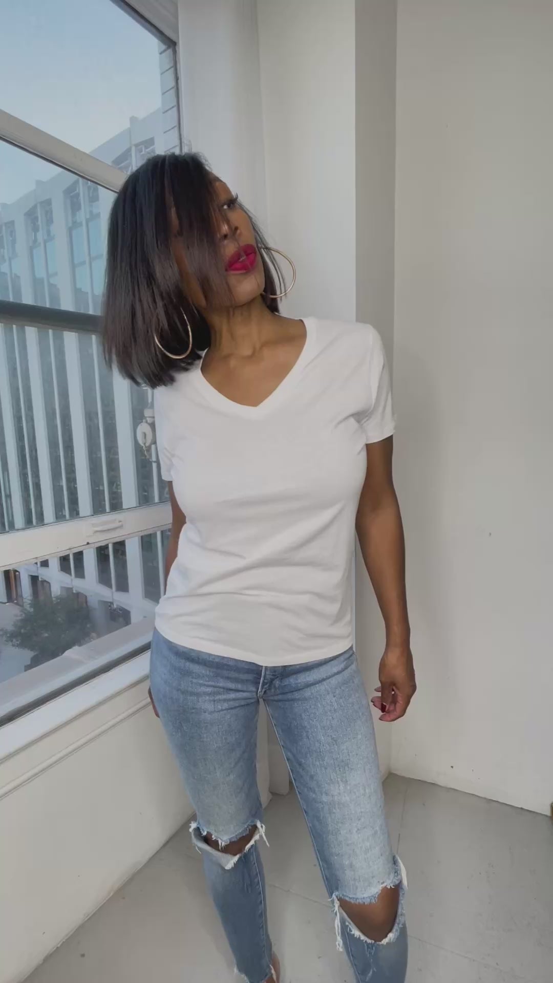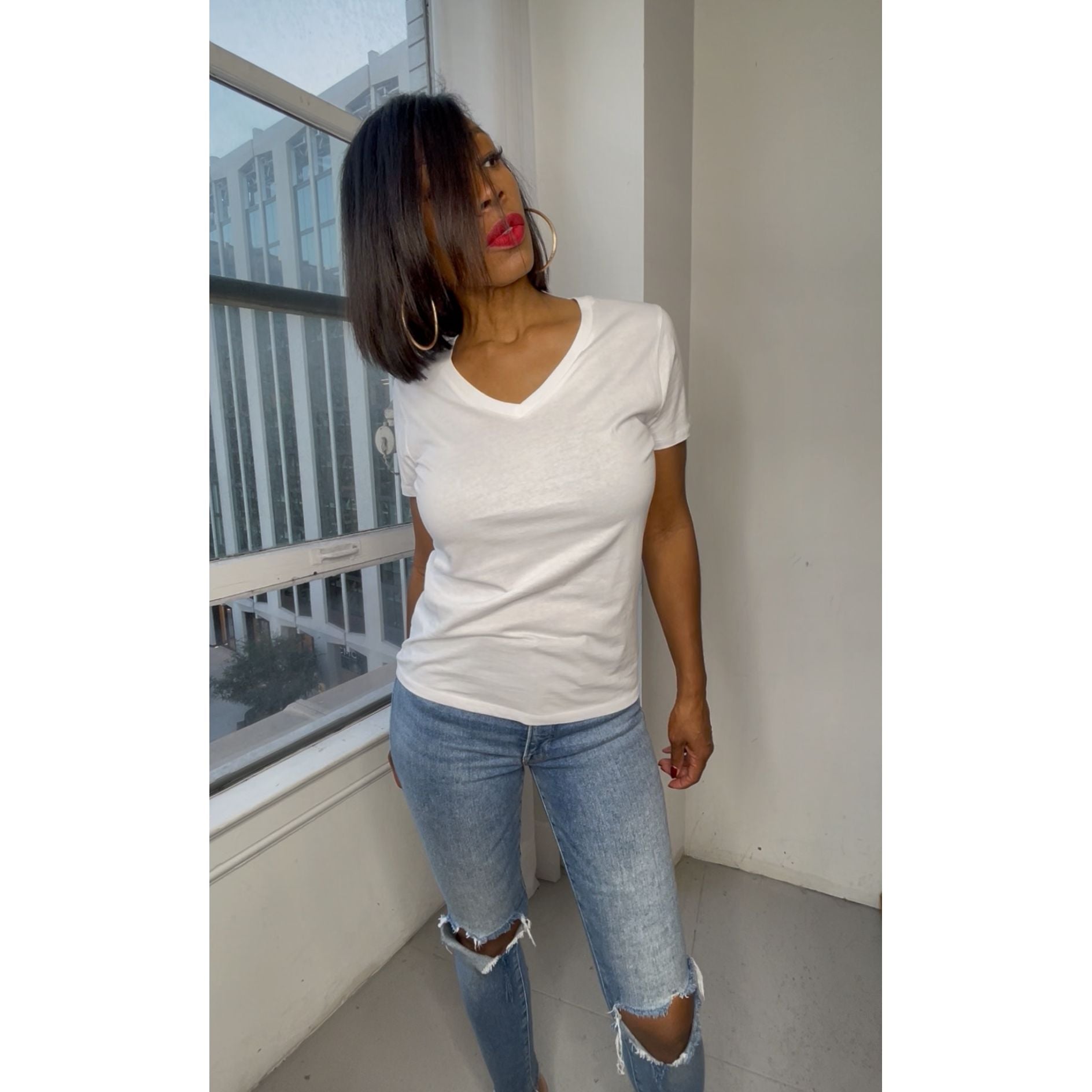 The Essential Tee is your wardrobe's new foundation piece. Clean, versatile, and impossibly comfortable, this V neck tee delivers the perfect fit that works with absolutely everything in your closet. Whether you're dressing it up or keeping it casual, its quality construction and flattering silhouette make it an instant favorite. Stock up on this must-have staple that effortlessly transitions from day to night. Add to cart now and discover why this tee belongs in every collection.