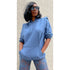 Oversize look: Model size medium wearing a XL with shoulder pads, color: Indigo Blu