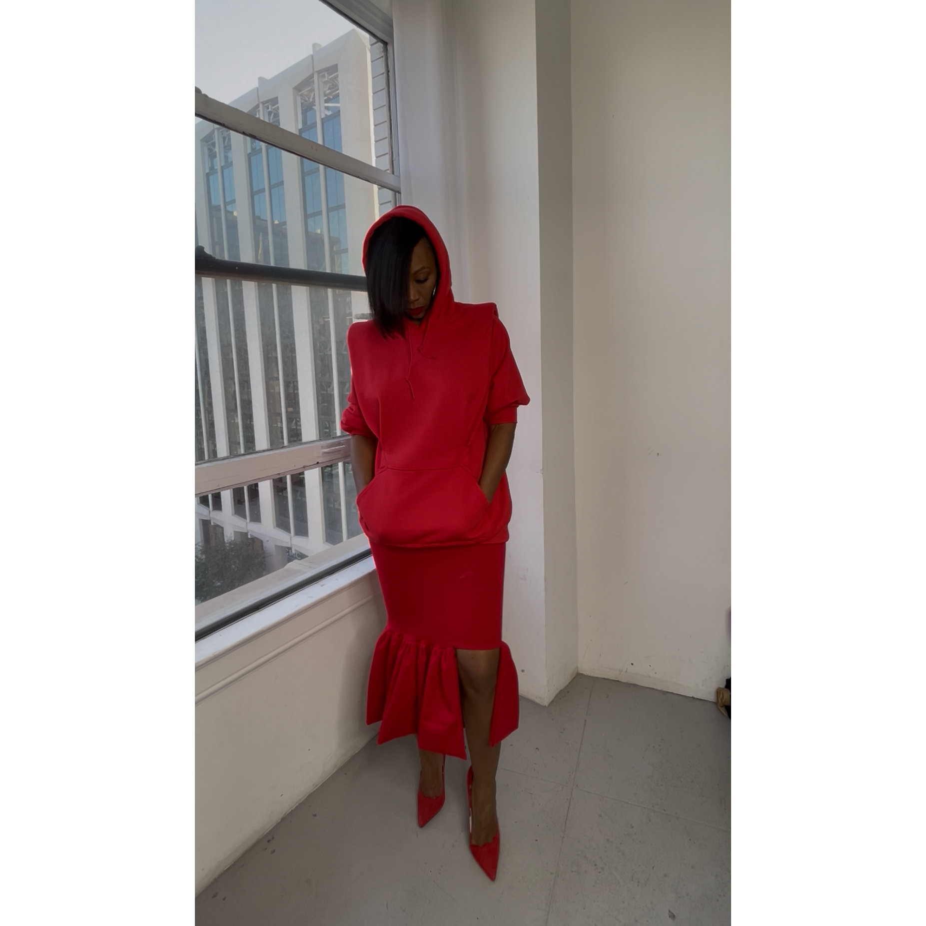 Red or black Max hoodie pairs perfect with our red or black Cela skirt
